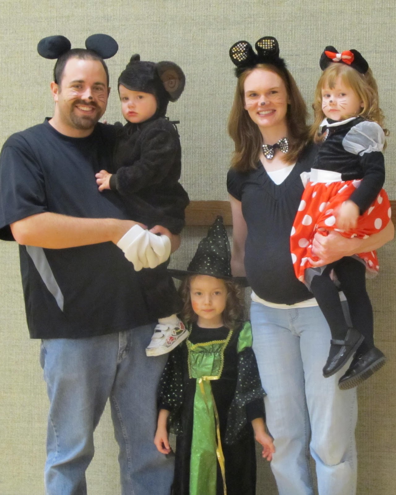 Lindsey asked Tim to be Mickey Mouse with her so I said I would be a black cat for Gracie. When I was at the store buying costumes I found a cop one for Tim but I asked Lindsey if she wanted Daddy to be a cop or Mickey Mouse and she quickly reminded me, "He wants to be Mickey Mouse!" So cute!