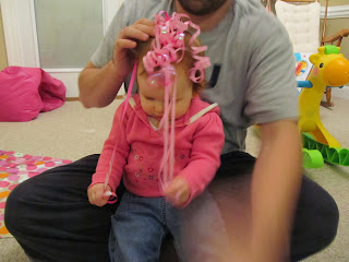 I wasn't sure if she'd keep the hat on long enough for me to get a picture since it's impossible to keep headbands or anything on her, but she kept it on, and she looked adorable!!!