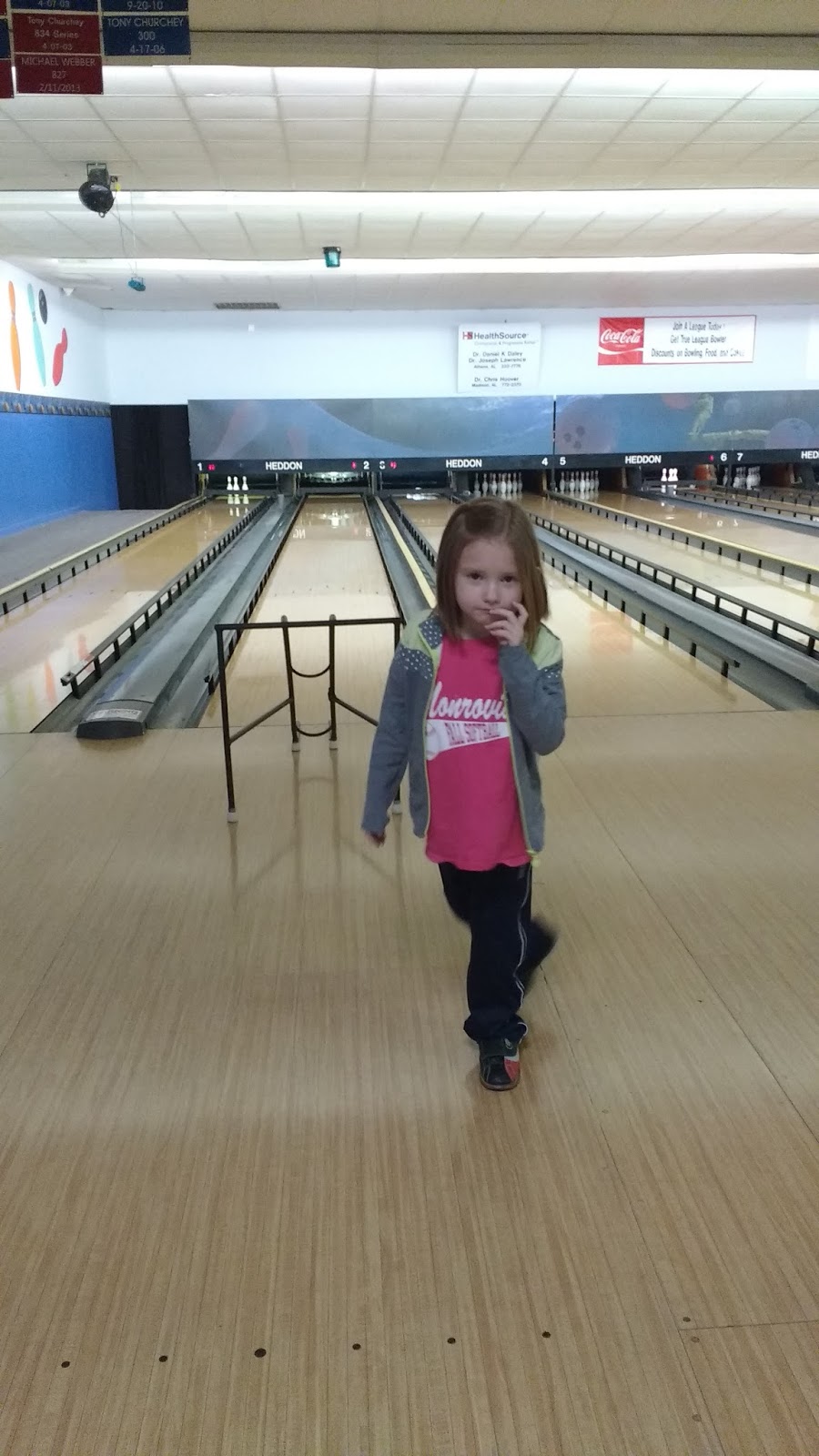 Then we got to go bowling! It had been a long time since we'd gone and it was a lot of fun, especially since I beat Tim! Haha! (I'm not competitive at all) It all came down to the tenth frame and I lucked out with my first and only strike. Of course he got a strike when I was taking video. Olivia kept getting strikes too!